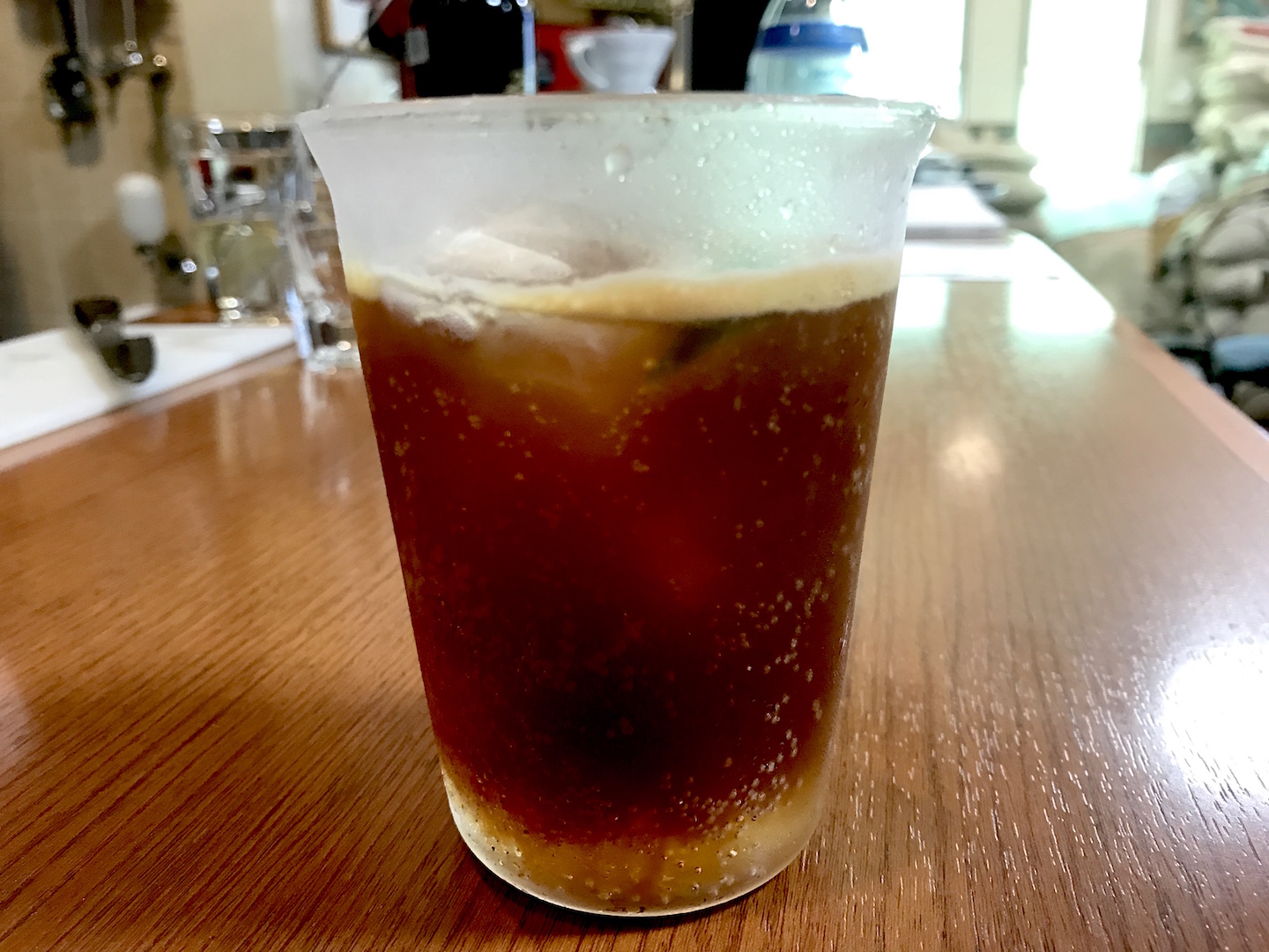ようやく梅雨が明けました。 連日の暑さで、焙煎室は40度に迫る勢いです。 社内で飲むコーヒーもアイスの割合が増えてきました。 今日は、巷で流行りのエスプレッソトニックをスタッフに注入いたしました。 冷凍庫でキンキンに冷やしたグラスに、たっぷりの氷、トニックウォーター、ライム(柑橘系フルーツ)、最後にエスプレッソ(ブルーナイル浅煎り)を投入。 柑橘の爽やかさと、エチオピアのフレーバーが見事にマッチした夏らしいドリンクです。 明日はオレンジでも試してみよう。。。 エスプ…